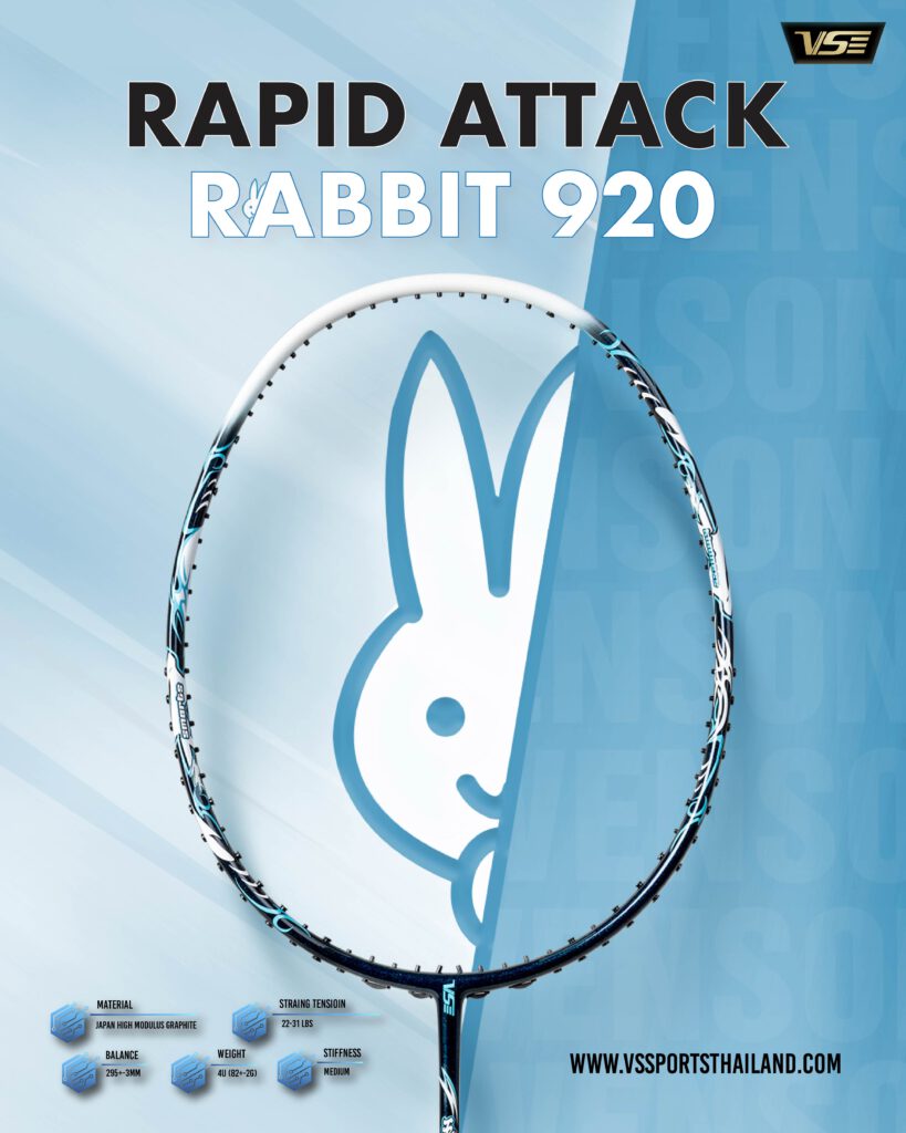 ไม้แบดน้องใหม่สายตะมุตะมิ Rabbit 920 เจ้ากระต่ายสายตบ ด้วยหัวไม้ที่มีน้ำหนักถึง 295 ทำให้เหมาะกับการเล่นเกมบุก